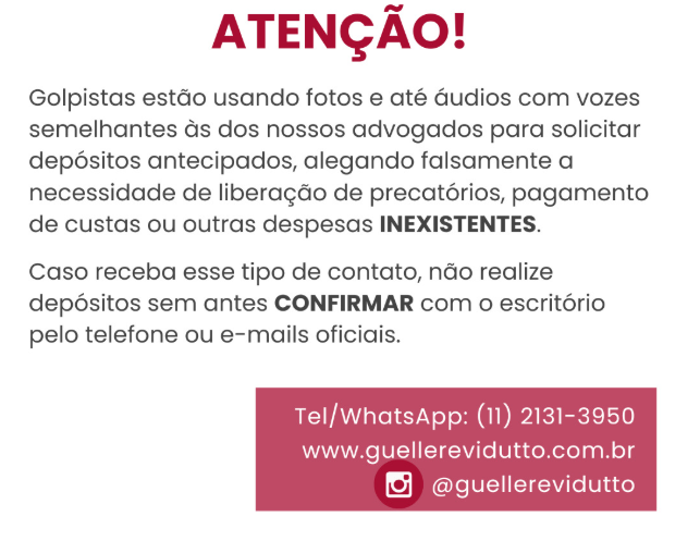 Nós da Gueller e Vidutto – Sociedade de Advogados, além de crermos no aperfeiçoamento da sociedade pelo Direito, e de acreditarmos que o sucesso de nossos clientes também tem como aliado o exercício da advocacia, buscamos a excelência e a qualidade na prestação de nossos serviços, com vistas a propiciar melhor futuro a todos os que nos procuram, para auxiliar concretamente na constituição de um Brasil onde a dignidade da pessoa humana seja, efetivamente, alçada ao primeiro lugar.